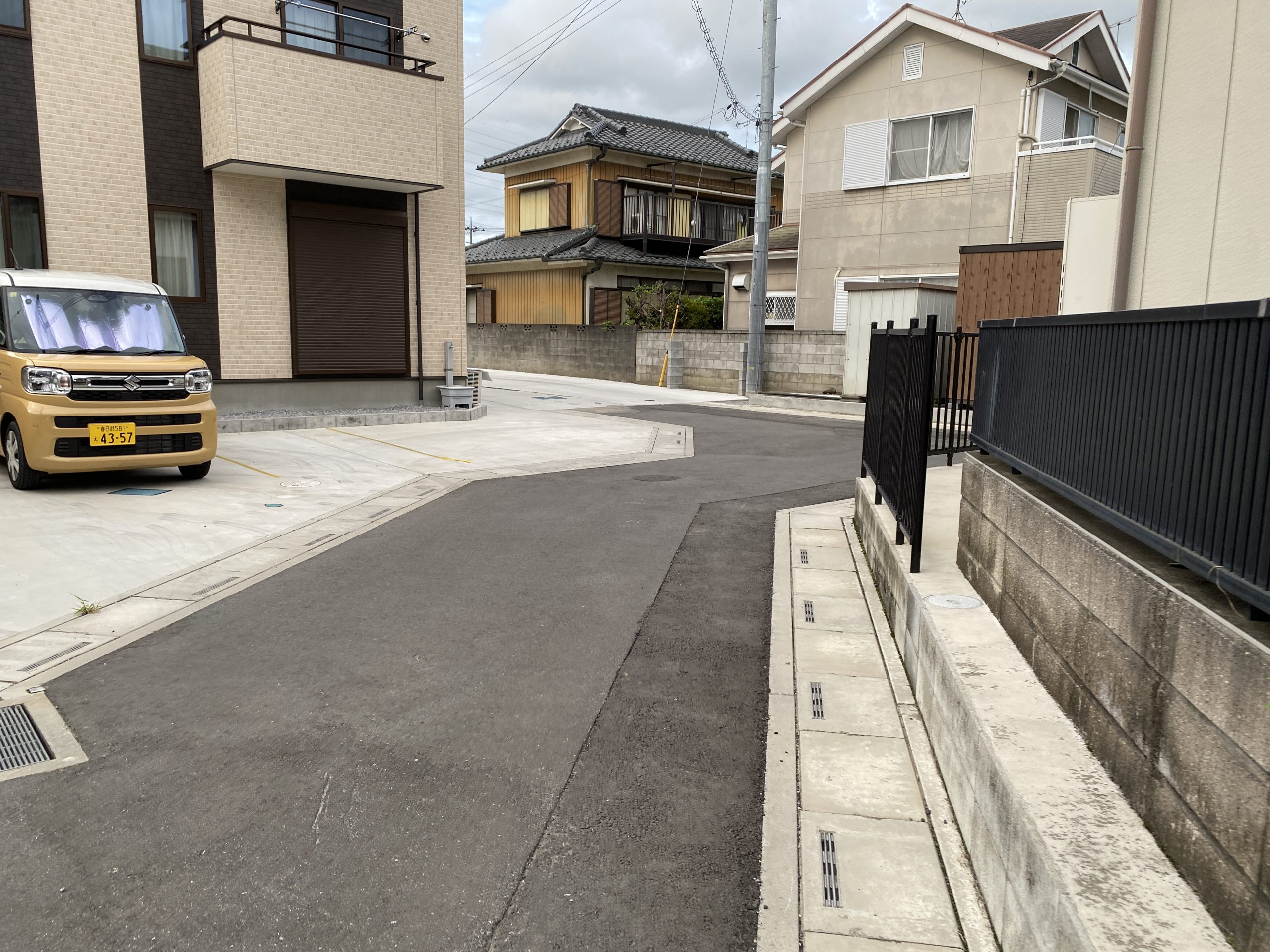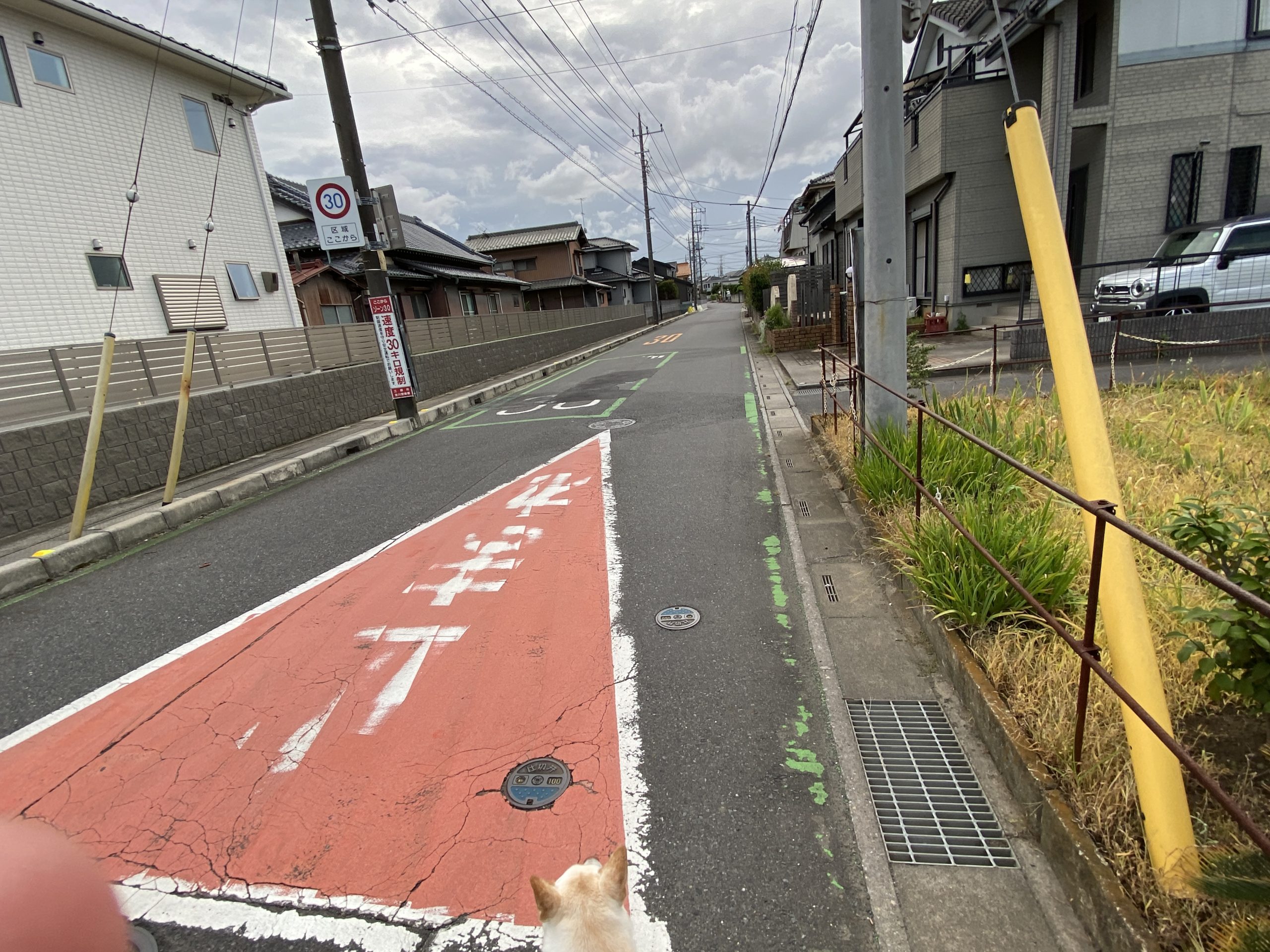 道庭1丁目駐車場を背に、東方向に進み、けやき通りへ向って直進